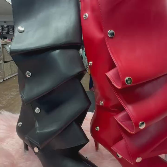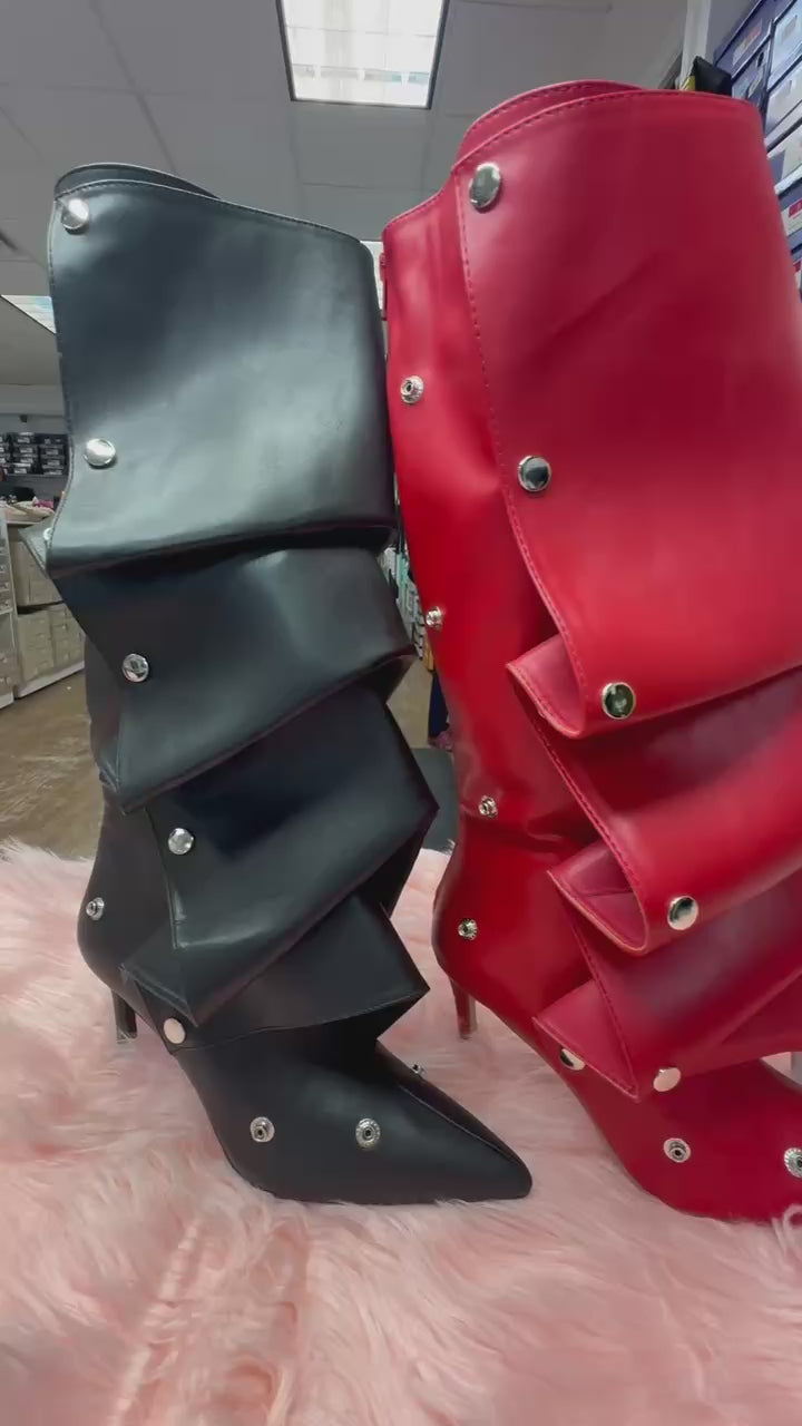 - Knee High Slouch Boots with Draped Front Panel