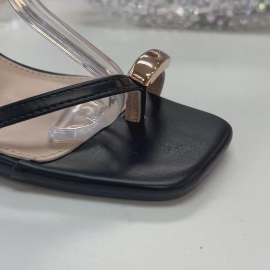 ELZA-01 Black Faux Leather Kitten Heel Open Toe Ring