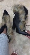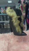 FANCY-2 Black Faux Leather and Faux Fur Bootie - Pointy Toe