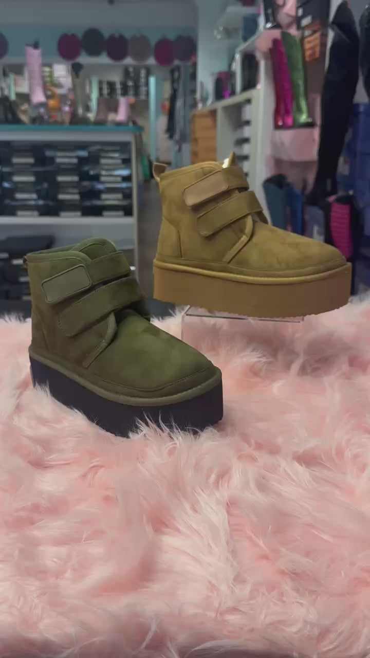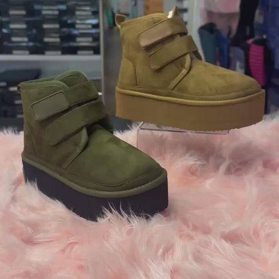 FELIA Camel Tan Faux Suede Strap Closure - Faux Fur Lining