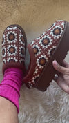 - Brown Multicolored Crochet Clog
