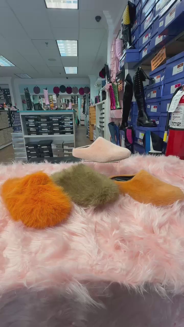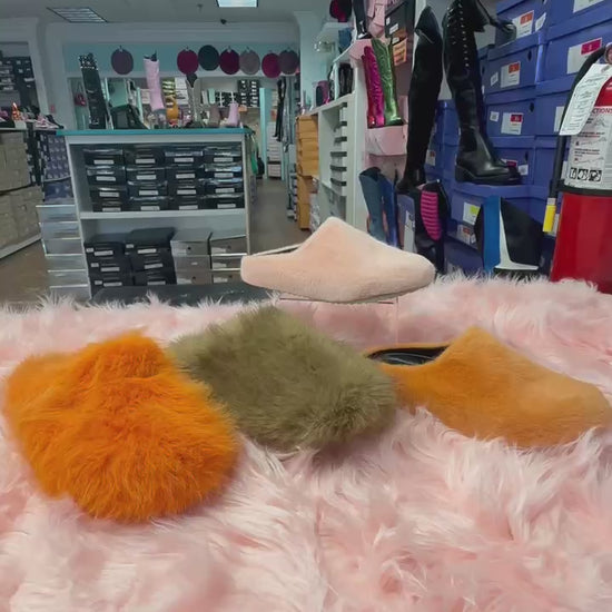 FURRY-10 Blush Pink Faux Fur Slip-On Clog