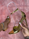 GRAZIA Gold Mirror Metallic Faux Leather Ankle Strap Heel
