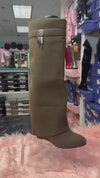 I AM THE ONE/2024 Brown Faux Suede Sleeve Boot Knee High