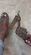 JOSY-6 Mono Taupe Print Platform Heel - Ankle Strap with Adjustable Buckle