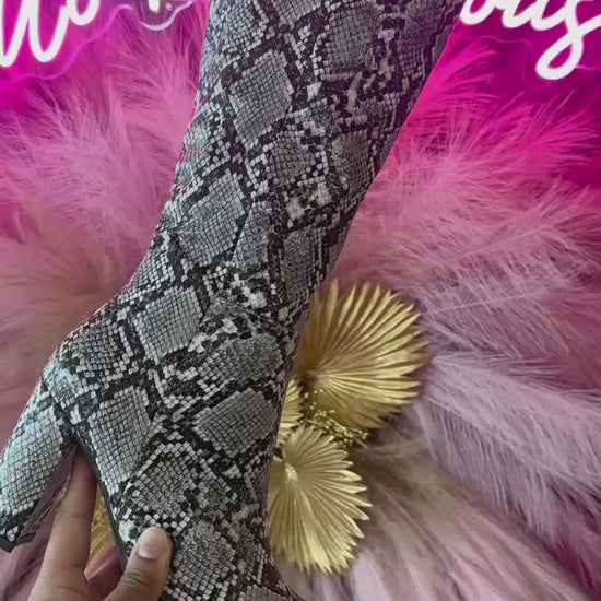 KAYLEE-1 Beige Faux Snake Knee-High Boot