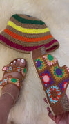 - Beige Ivory Multicolored Crochet Sandal