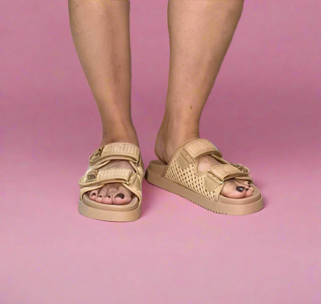 - Beige Tan Open Weave Natural Raffia Sandal