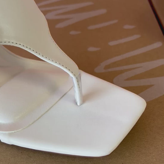 MERASA-13 White Stone Kitten Heel Split Toe Black Faux Leather - Slip On - Square Open Toe