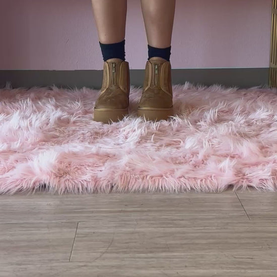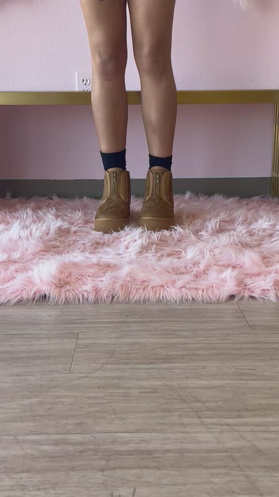 MIANE Camel Tan Faux Suede Zip Up Bootie - Faux Fur Lining