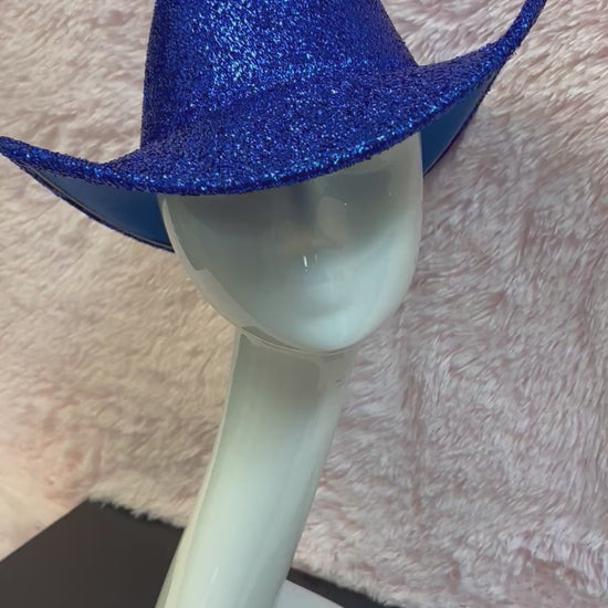 -Glittery blue fabric cowboy hat