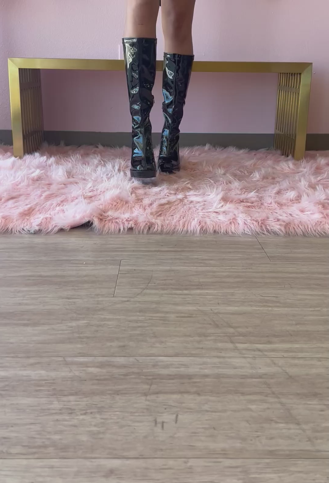 PRESLEY-01/2025 Black Faux Leather Platform Gogo Boots