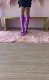 PRESLEY-01/2025 Purple Metallic Faux Leather Platform Gogo Boots