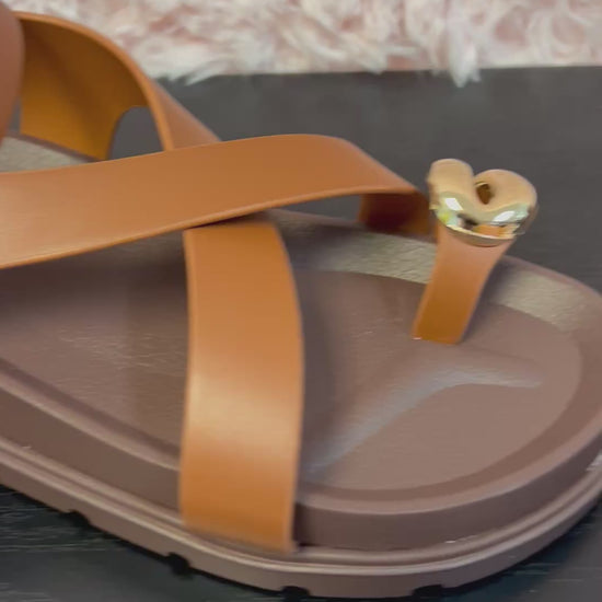 The Promise Tan Luxe Sandal blends everyday comfort with effortless style. Featuring crisscrossed tan straps, a rich brown sole, and a gold-toned toe ring detail, this sandal brings modern elegance to any outfit. Whether you're off to brunch or strolling a weekend market, this look means business—without trying too hard.