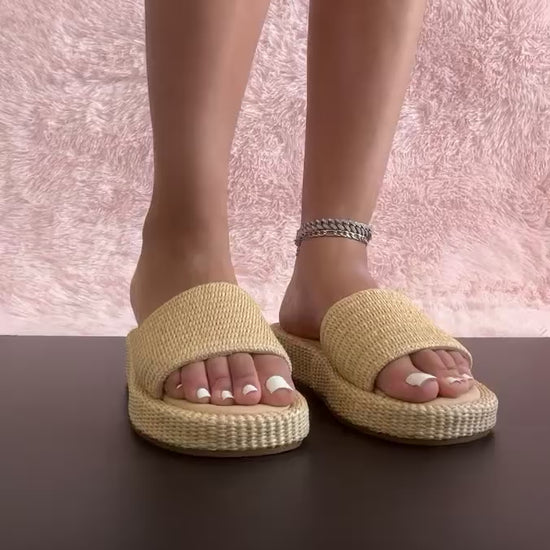 - Beige Tan Natural Raffia Sandal