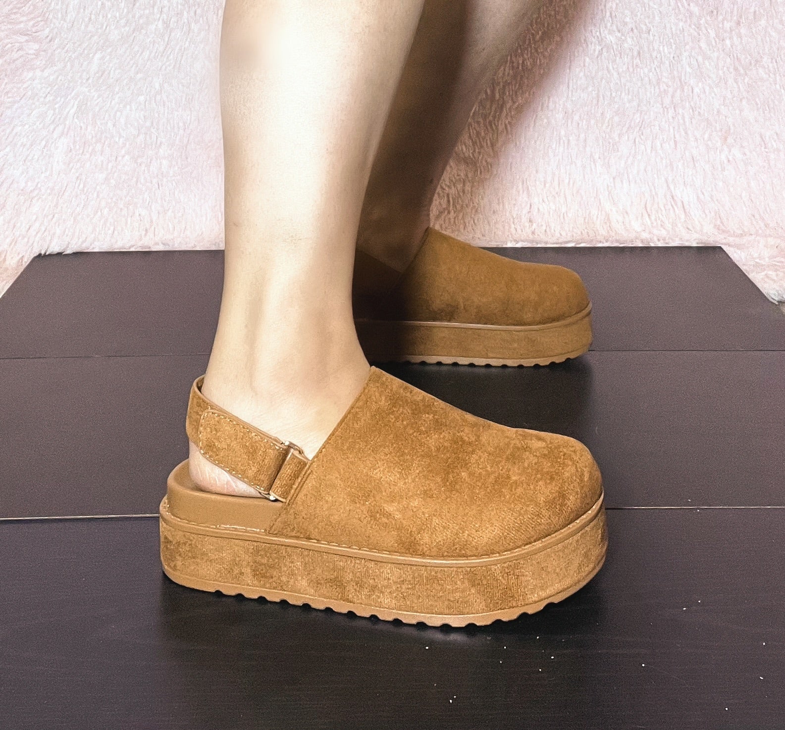RENO-1 Tan Faux Suede Platform Clog Slingback