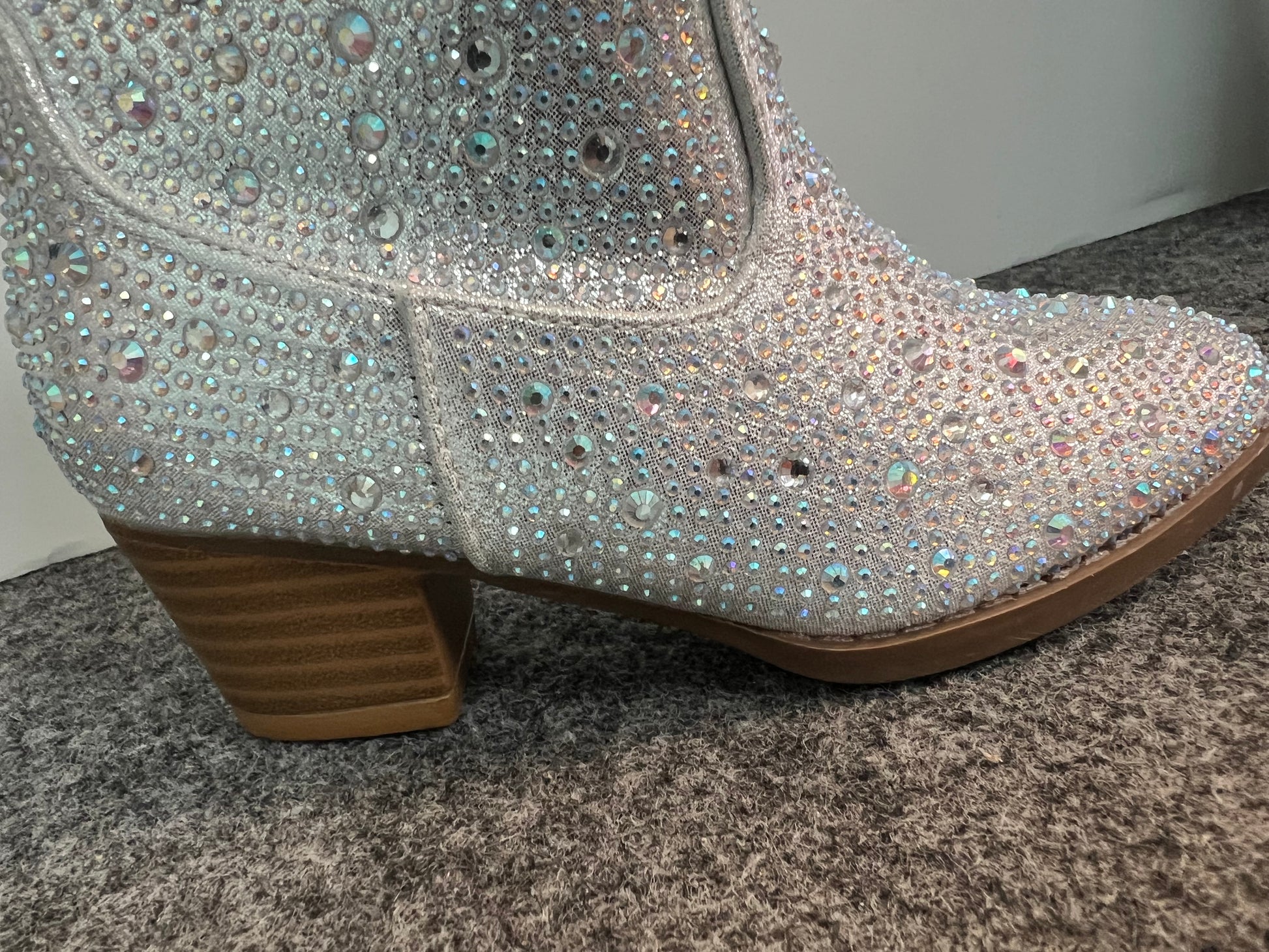 - Silver Rhinestone Encrusted Cowboy Ankle Bootie