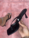 ROSSIE-56/SECOND Black Kitten Heel Split Toe Mule Black Faux Leather