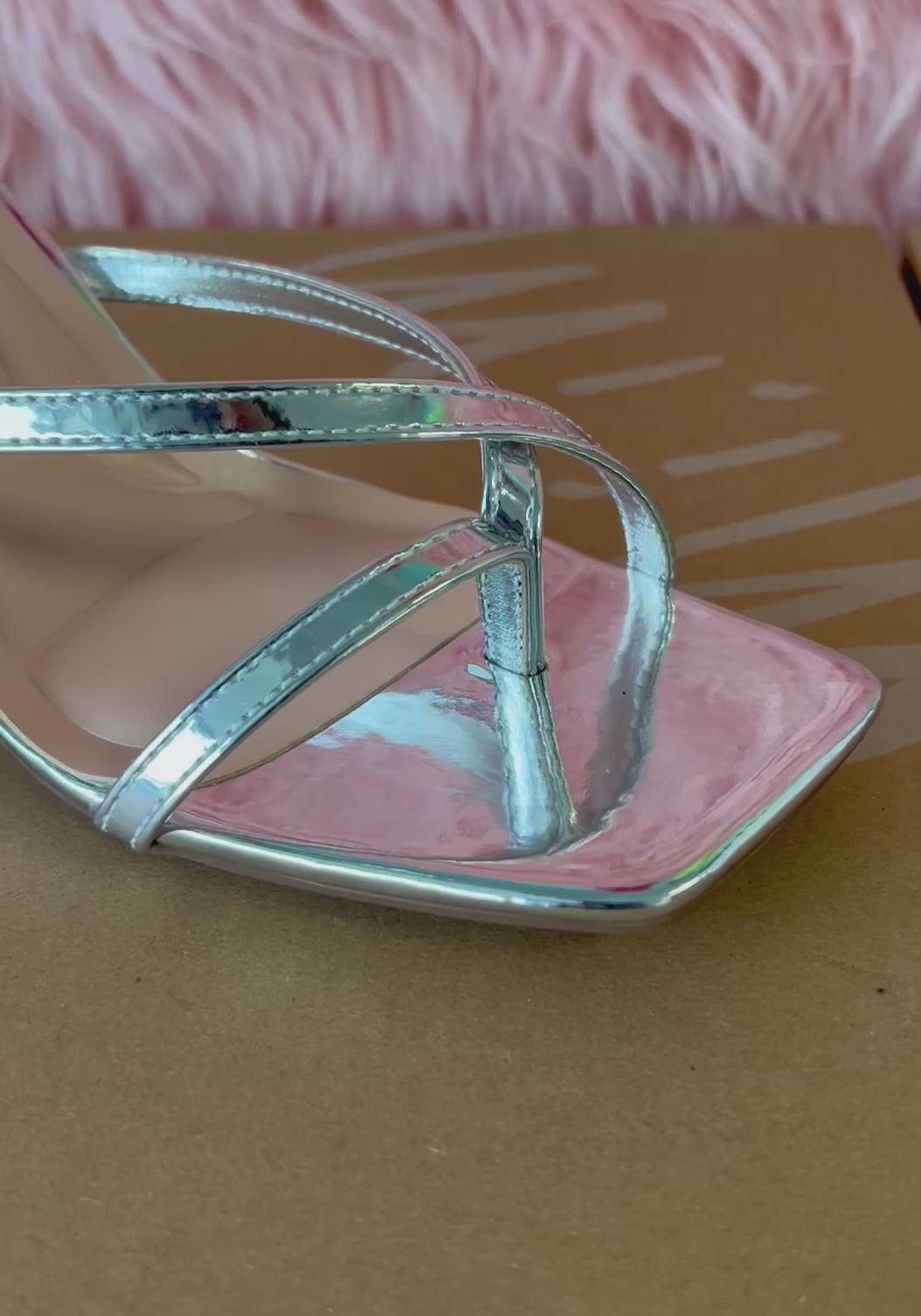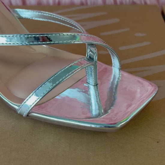 MERASA-09 Silver Kitten Heel Open Toe Faux Leather