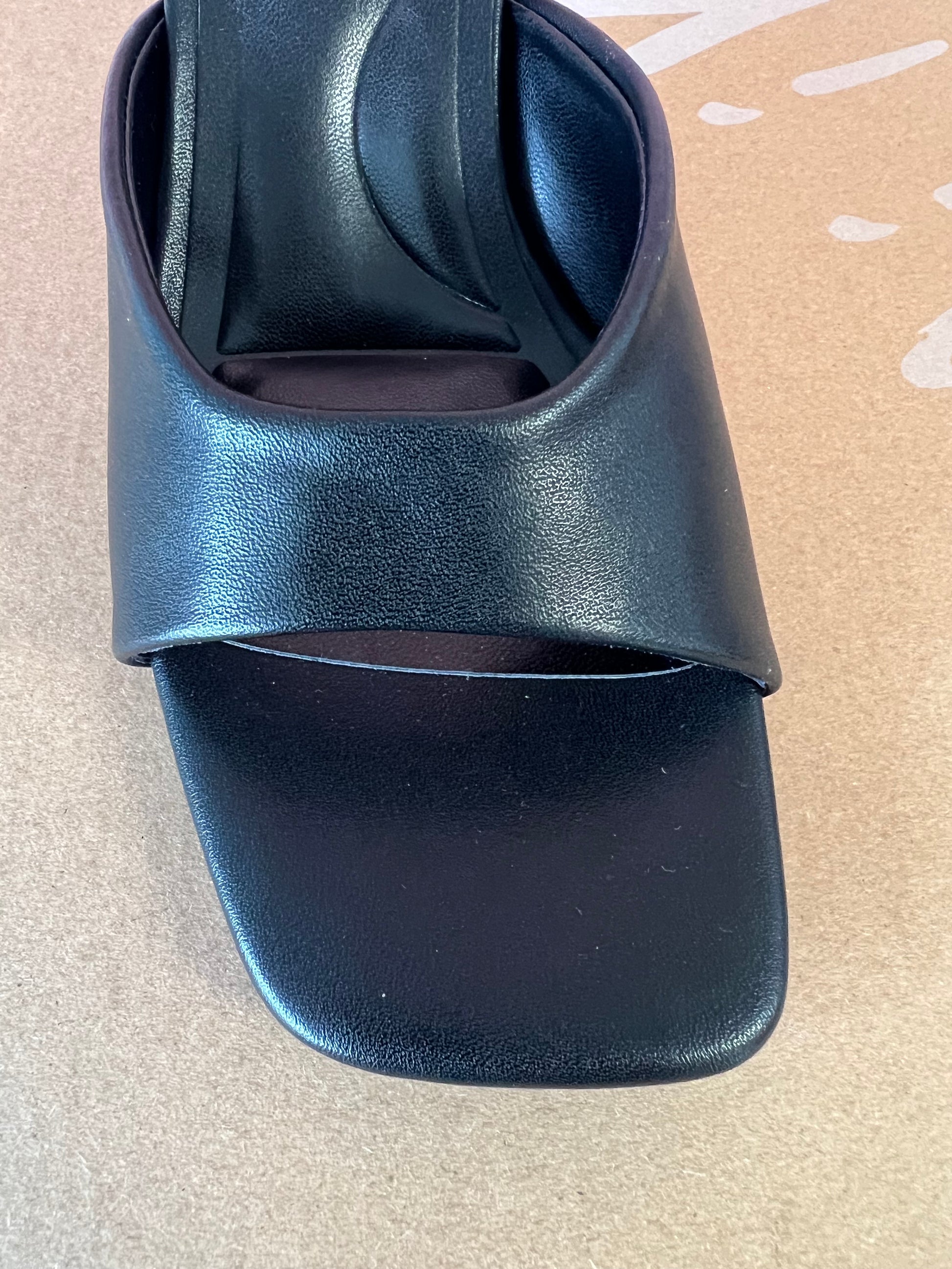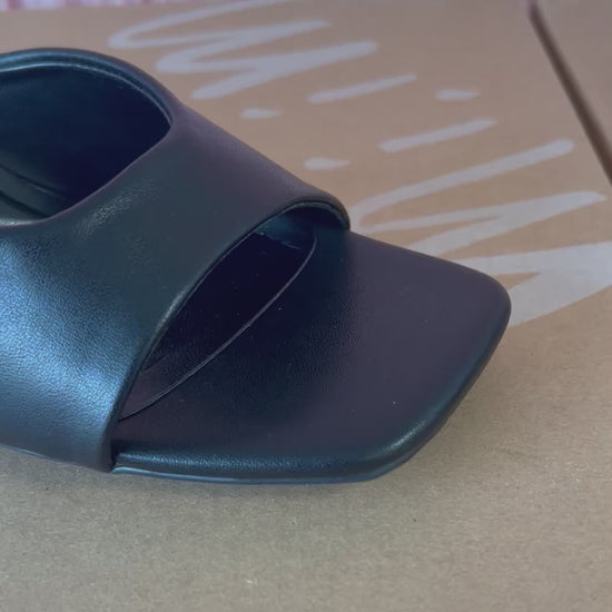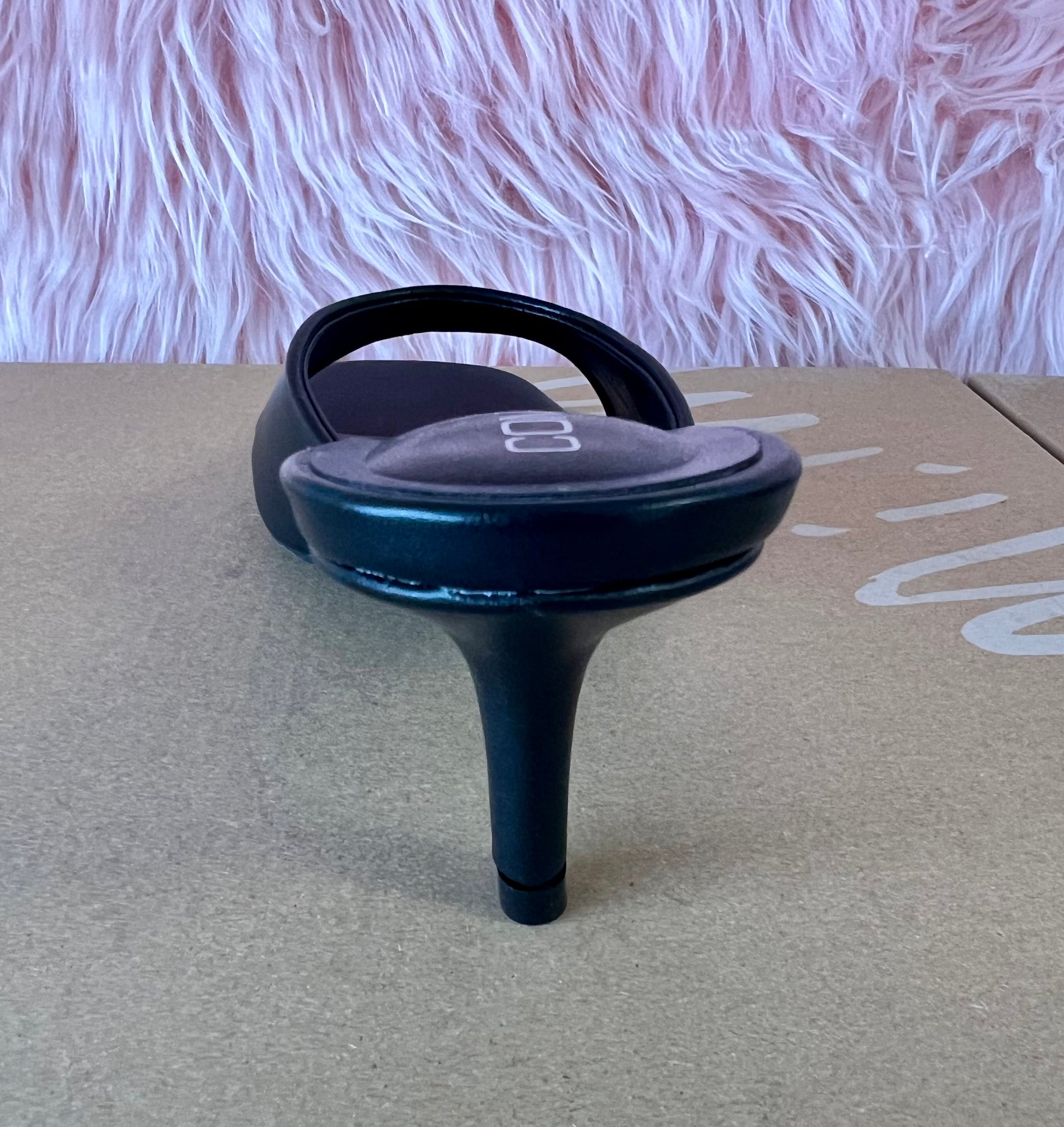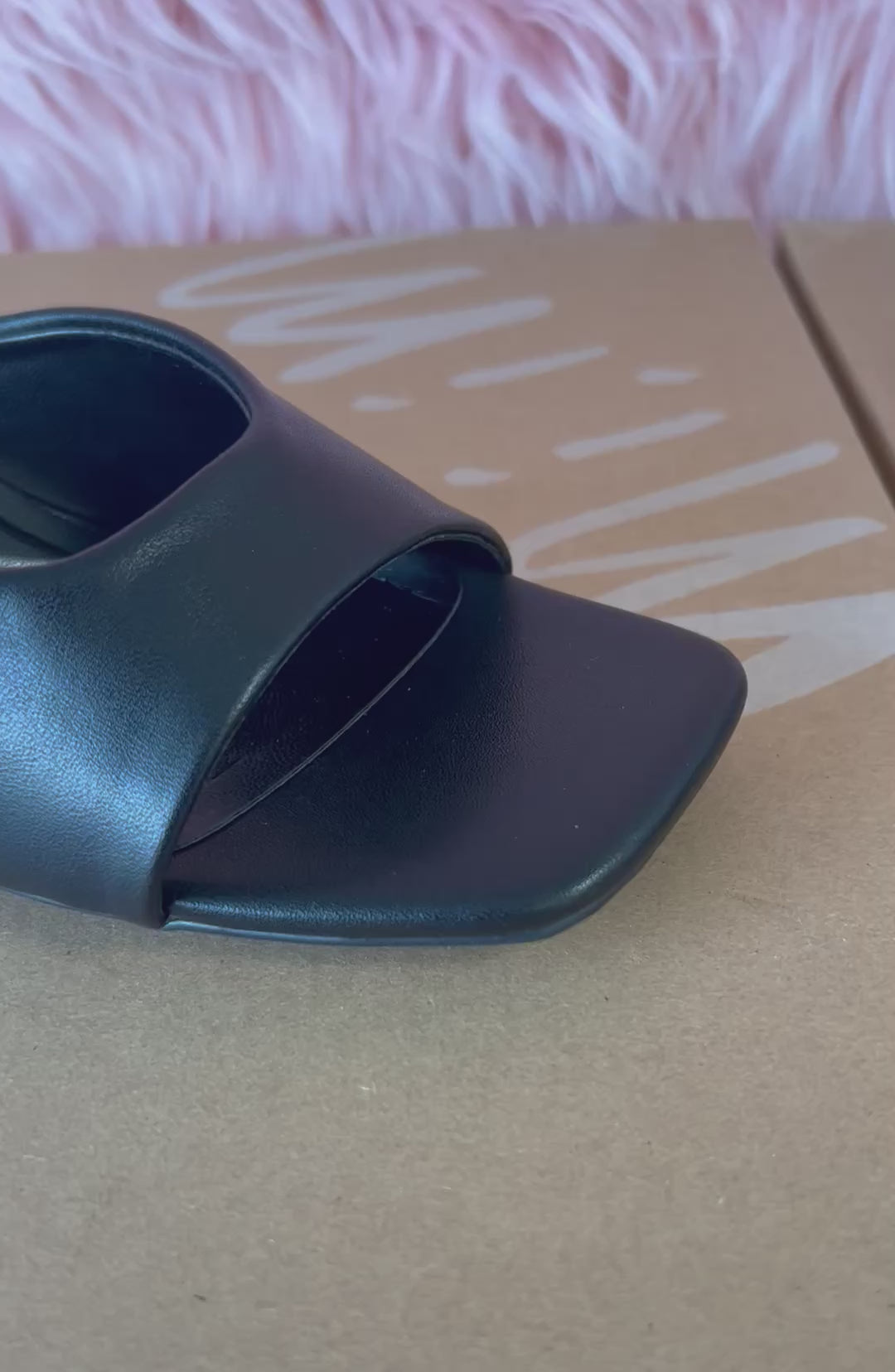ELLIE-40 Black Kitten Heel Open Toe Black Faux Leather