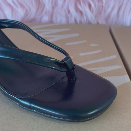 Step out in style with the Contradtion Black Thong Kitten Heel. This sleek, playful design combines a minimalist thong strap with a chic kitten heel, perfect for adding a flirty touch to any outfit. Comfortable yet eye-catching, these heels are ideal for dancing the night away or turning heads on a casual day out. Elevate your look effortlessly with this fun and fashionable pair.