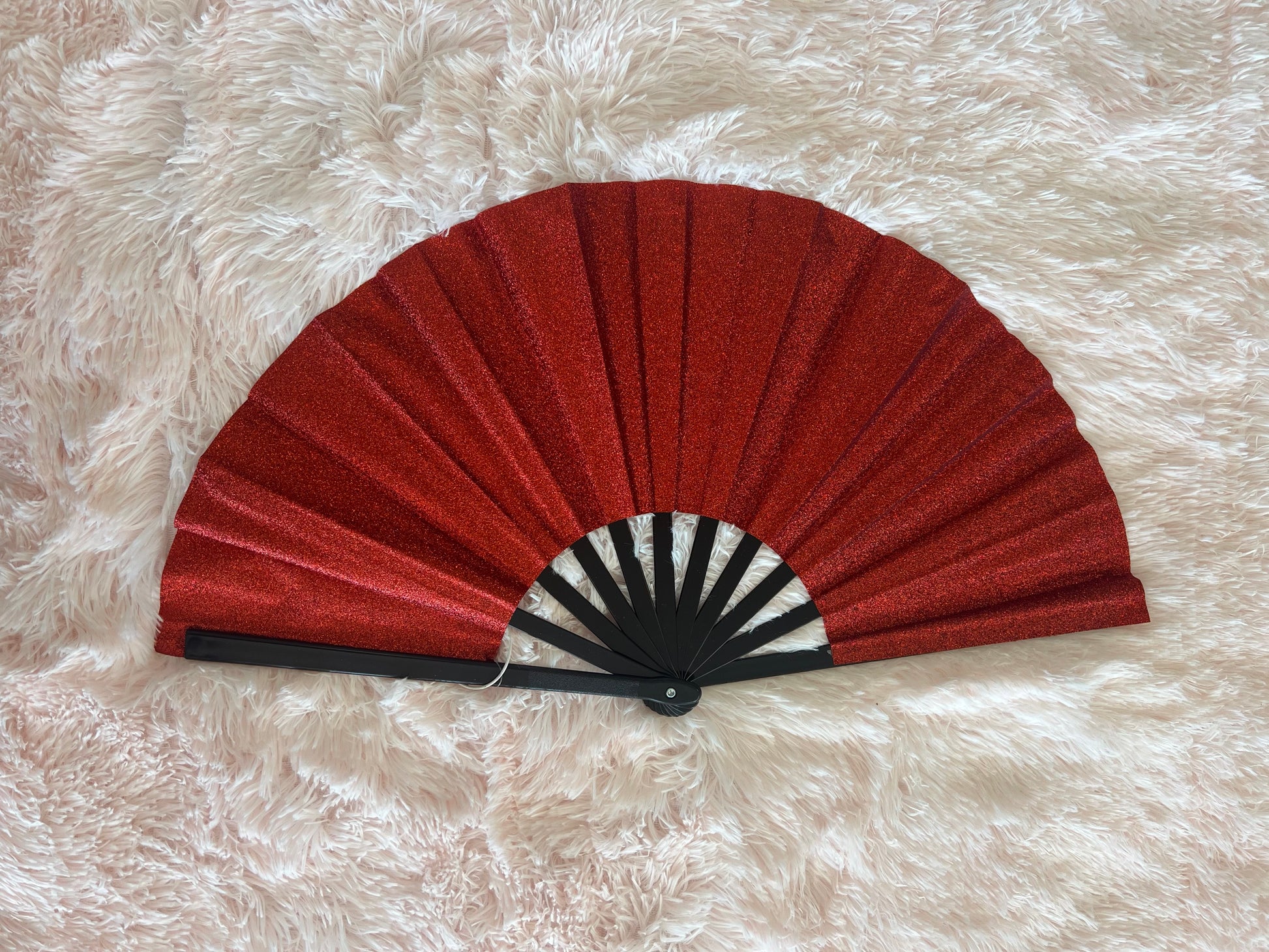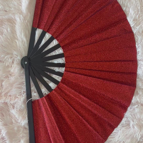 -stiff glitter fabric fan in beautiful, saturated red