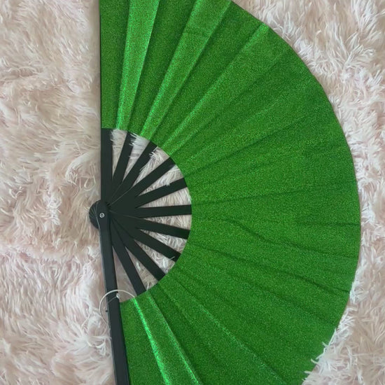 -stiff glitter fabric fan in beautiful, saturated green