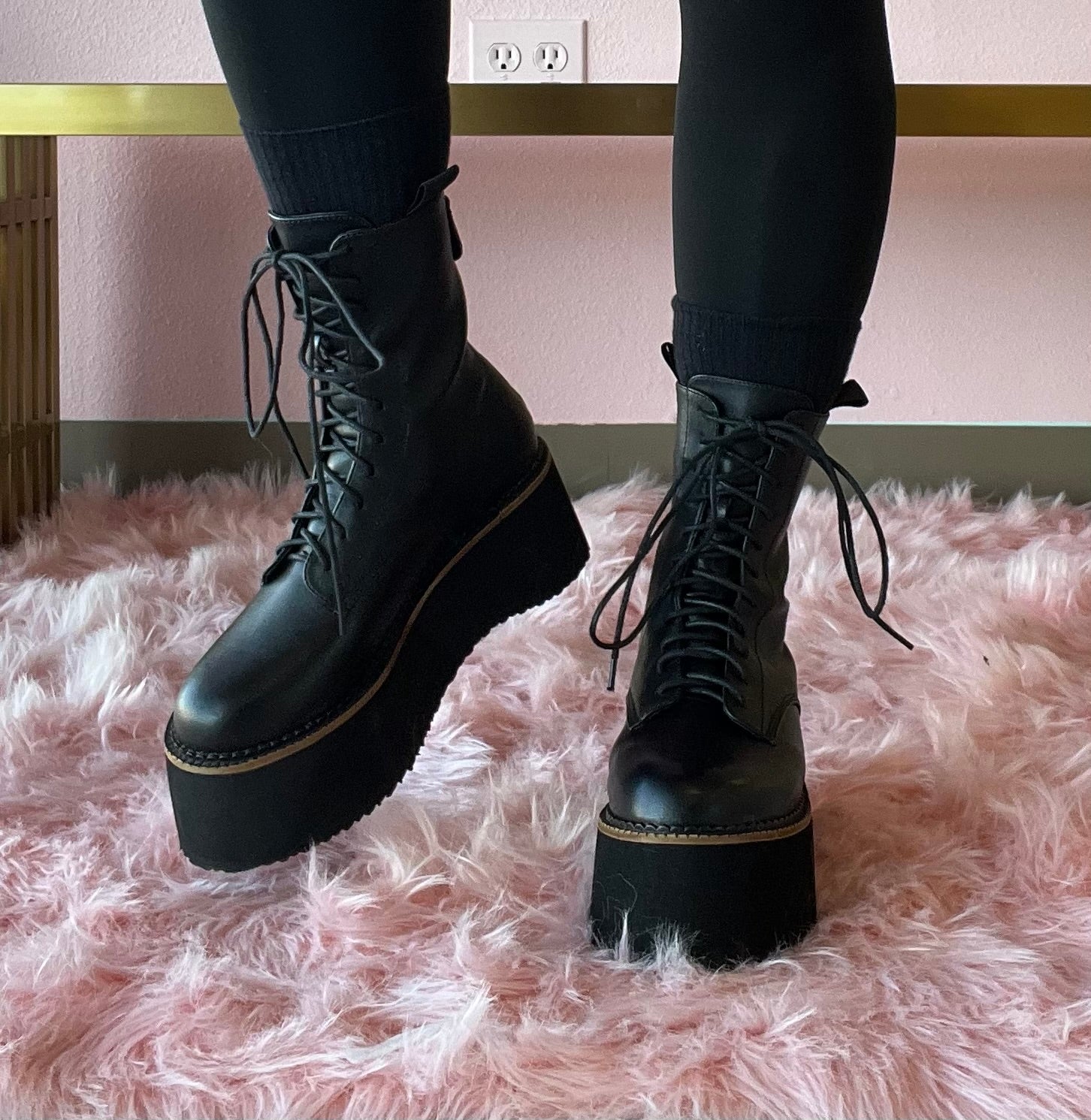 THE RIVETER Black Faux Leather Platform Combat Boot