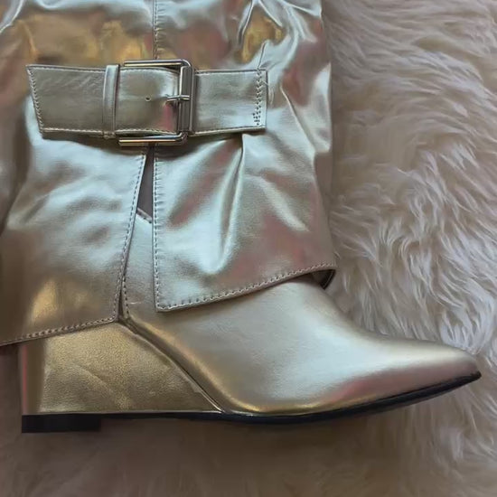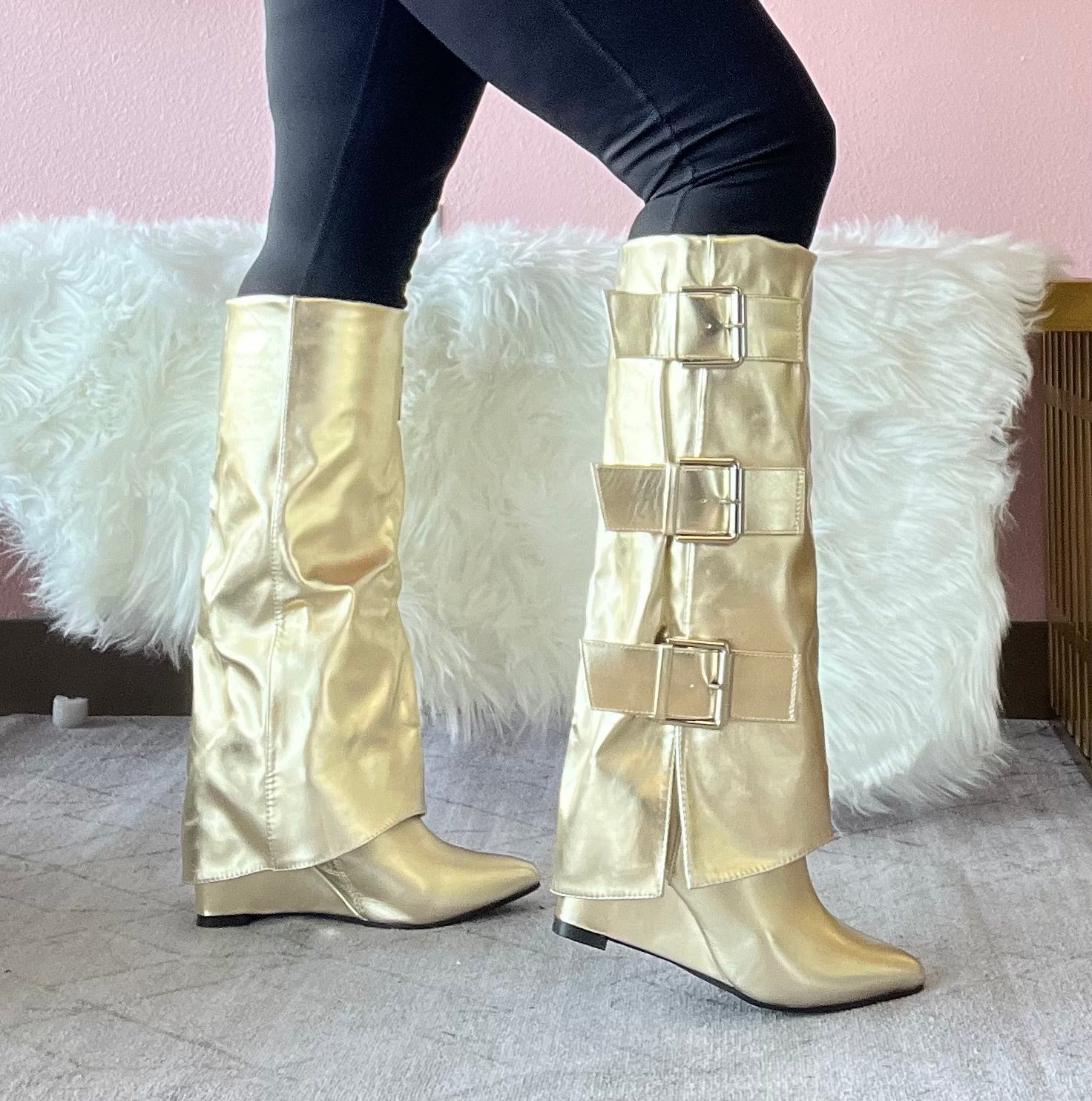 TIMELY Gold Faux Leather Sleeve Boot - Knee-High Sleeve Drape Over