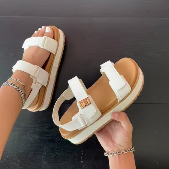 The TRACI-1 White Double Strap Sandal is an effortless style for any occasion. With its open toe, buckle detail, and flatform sole, it's the perfect blend of fashion and functionality. Whether you're heading to a casual lunch with friends or need a comfortable yet stylish option for a night out, these sandals have got you covered. Plus, the slingback design adds extra support and security for all-day wear.