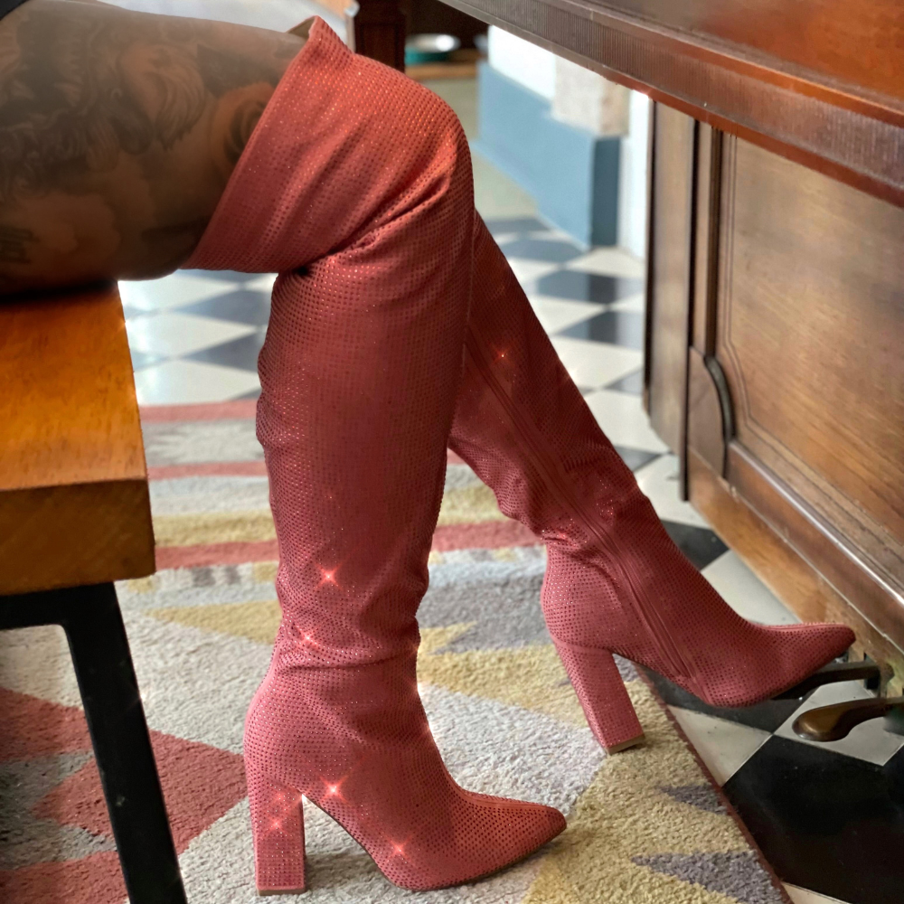 - Pink Rhinestone Encrusted Boots